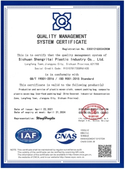 四川晟睿泰塑业有限公司成立于2017年9月,座落于四川省江油市龙凤镇,公司主要从事:塑料制品、编织袋、纸塑包装品,新型材料的生产及再生资源的回收利用。公司占地面积200亩,投资5亿元,建设年产4.5亿平方米复膜包装材料项目。现拥有厂房5万平方米、塑料制品生产线6条、造粒生产线6条,热封阀塑料包装袋生产线5条,拥有高速拉丝机、德国进口热封等设备,通过了质量管理体系认证,拥有4个行业类别注册商标、12个实用技术专利,达到国内领先水平。年产能可达:2万吨塑料颗粒、1亿条复膜包装袋、1.8亿条热封阀包装袋。公司现有员工300人,其中技术员140人,管理人员80人。